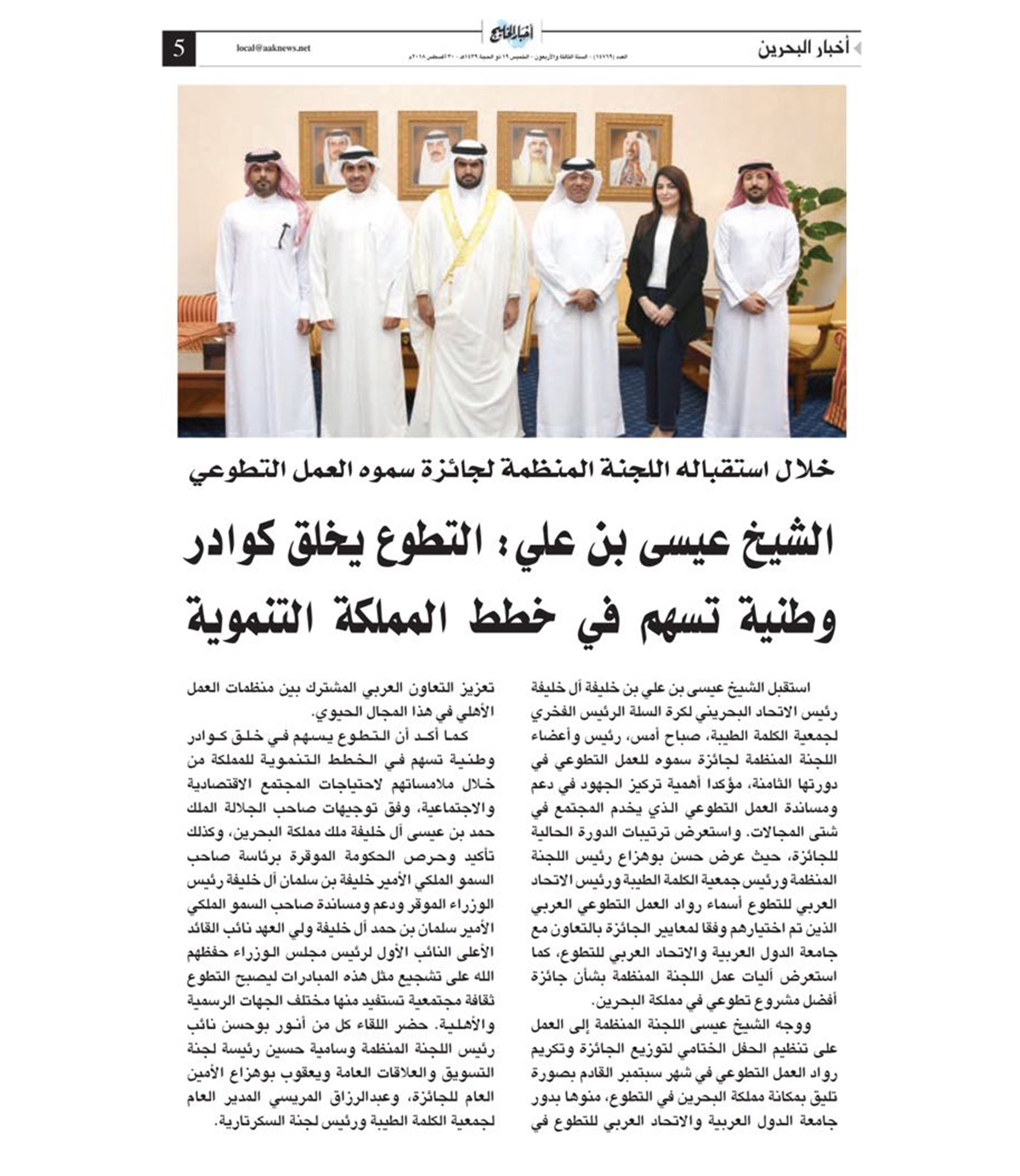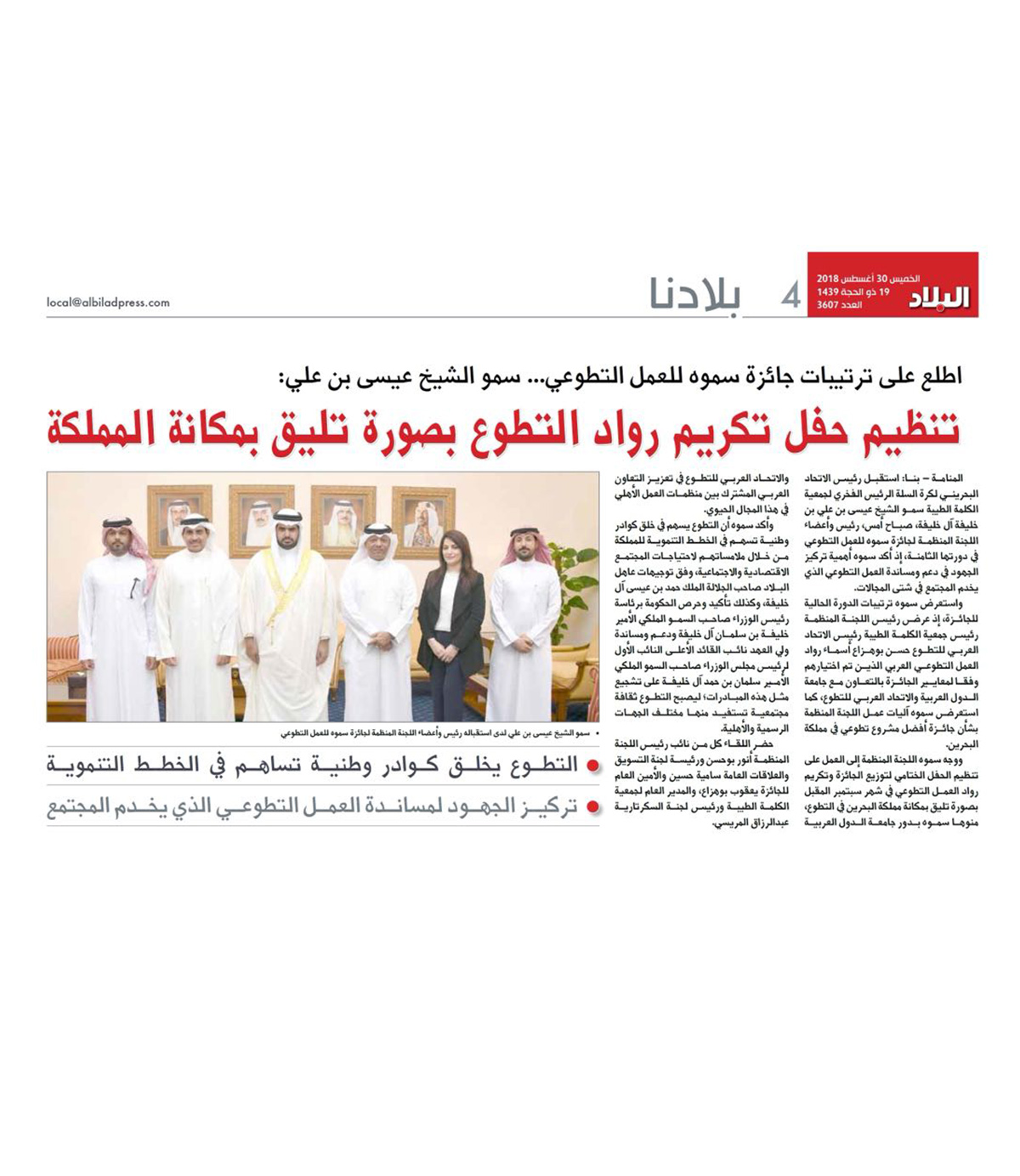 شاهد أخبار الصحف | سمو الشيخ عيسى بن علي: التطوع يخلق كوادر وطنية تسهم في خطط المملكة التنموية
