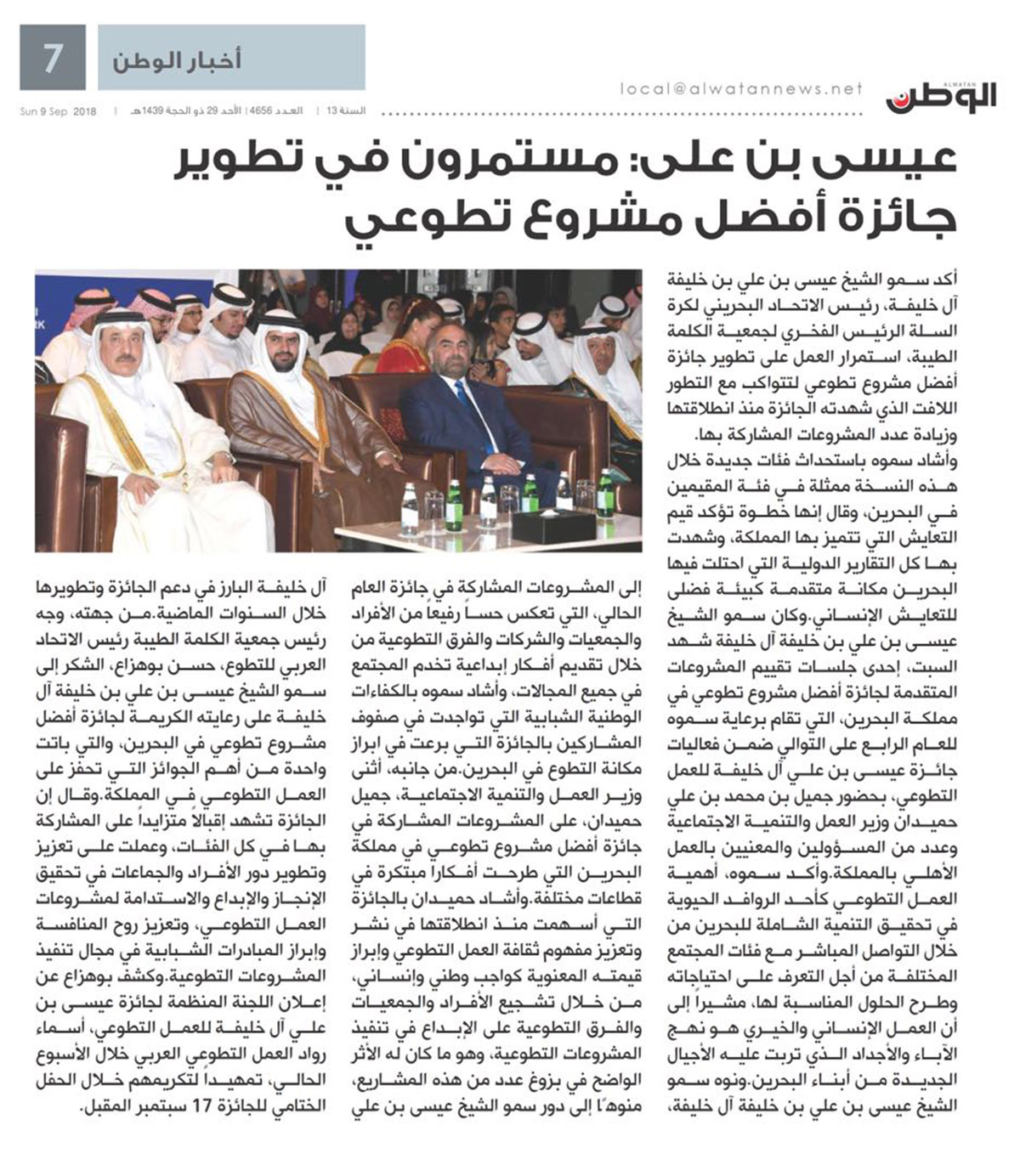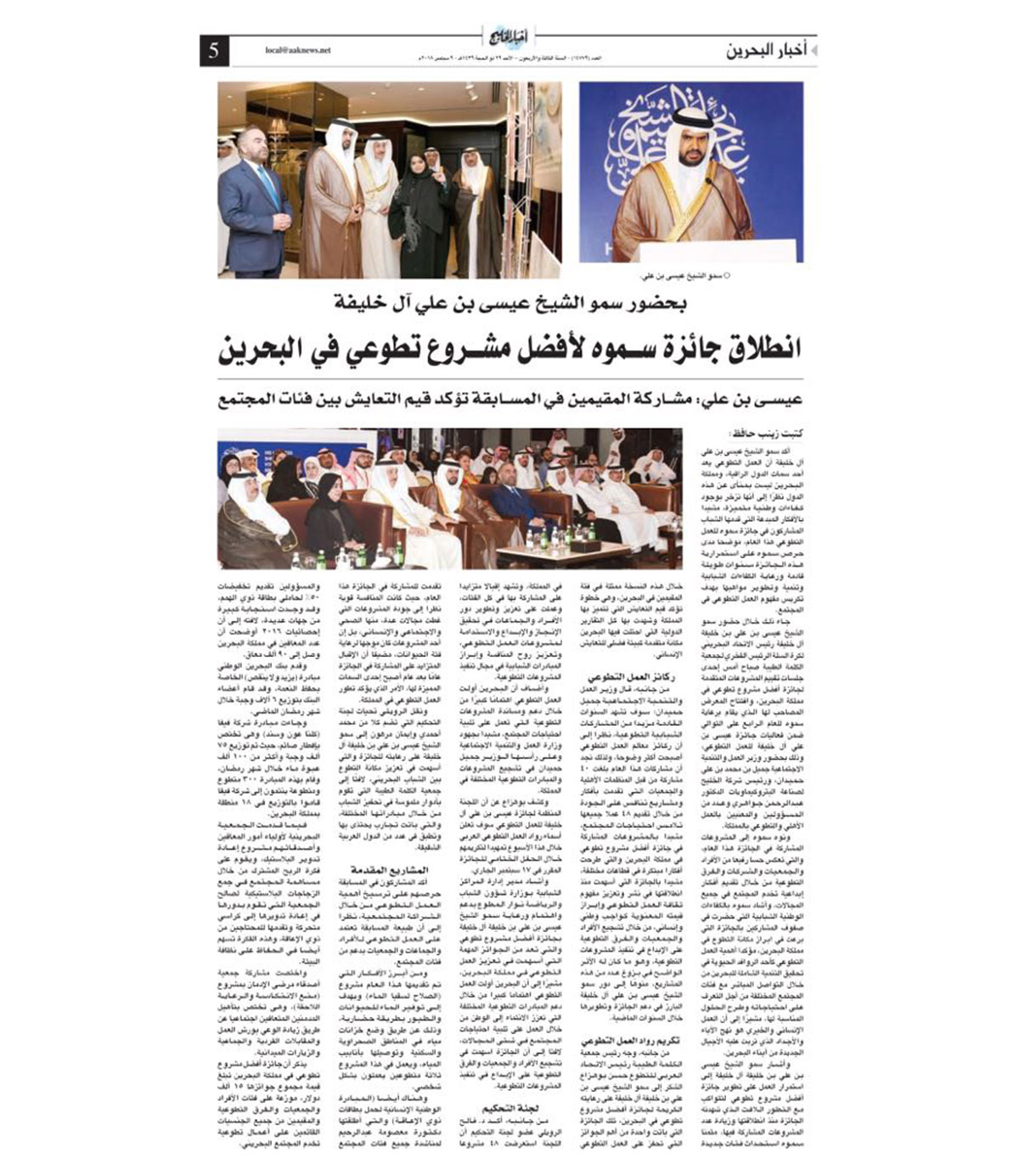 التغطية الصحفية 9 سبتمبر | سمو الشيخ عيسى بن علي : العمل التطوعي أحد الروافد الحيوية في تحقيق التنمية الشاملة للملكة