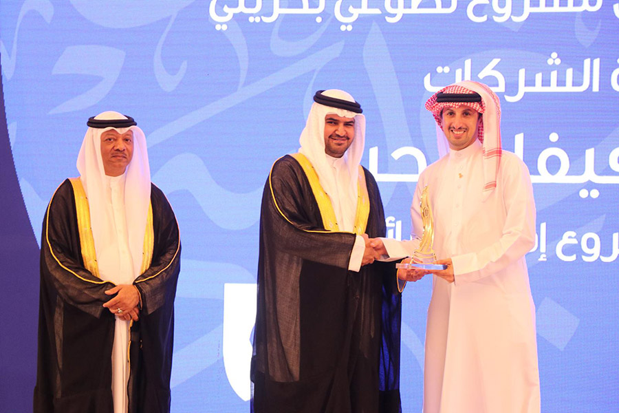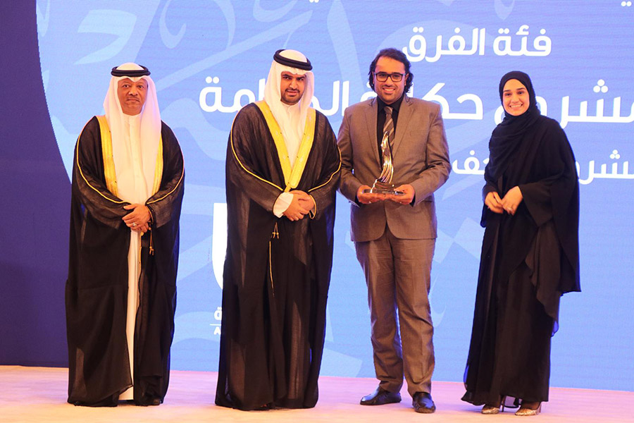 ثم قام سموه بتسليم جائزة أفضل مشروع تطوعي في مملكة البحرين، فئة الافراد : محمد عباس خان عن مشروع Saturday Biryani Party with Workers، فئة الفرق : فريق مشروع حكاية المنامة عن مشروع متحف المنامة الرقمي فئة الجمعيات : جمعية حفظ النعمة – عن مشروع حفظ النعمة، فئة الشركات: شركة فيفا البحرين عن مشروع افطار صائم