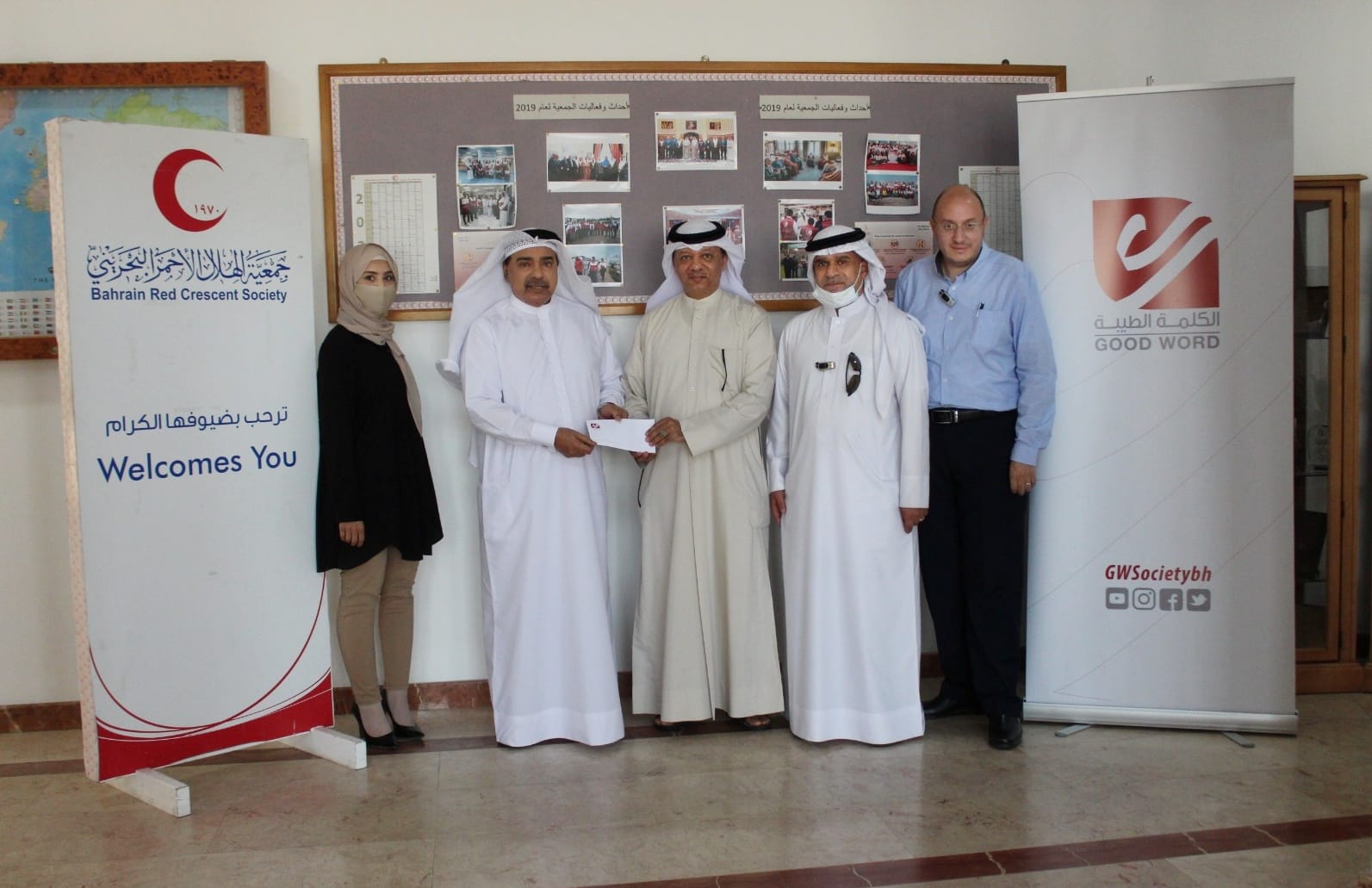 وذلك بحضور رئيس مجلس إدارة جمعية الكلمة الطيبة الاستاذ حسن محمد بوهزاع والأمين العام بالوكالة لجمعية الهلال الأحمر البحريني الاستاذ مبارك خليفة الحادي.