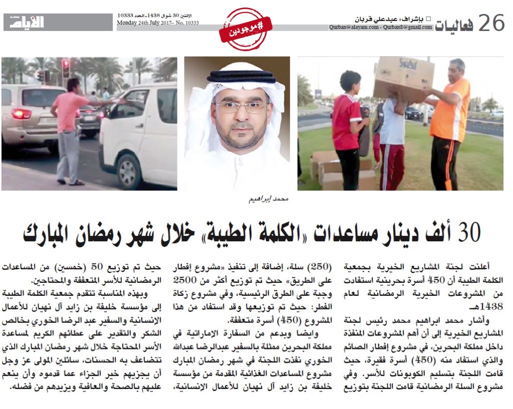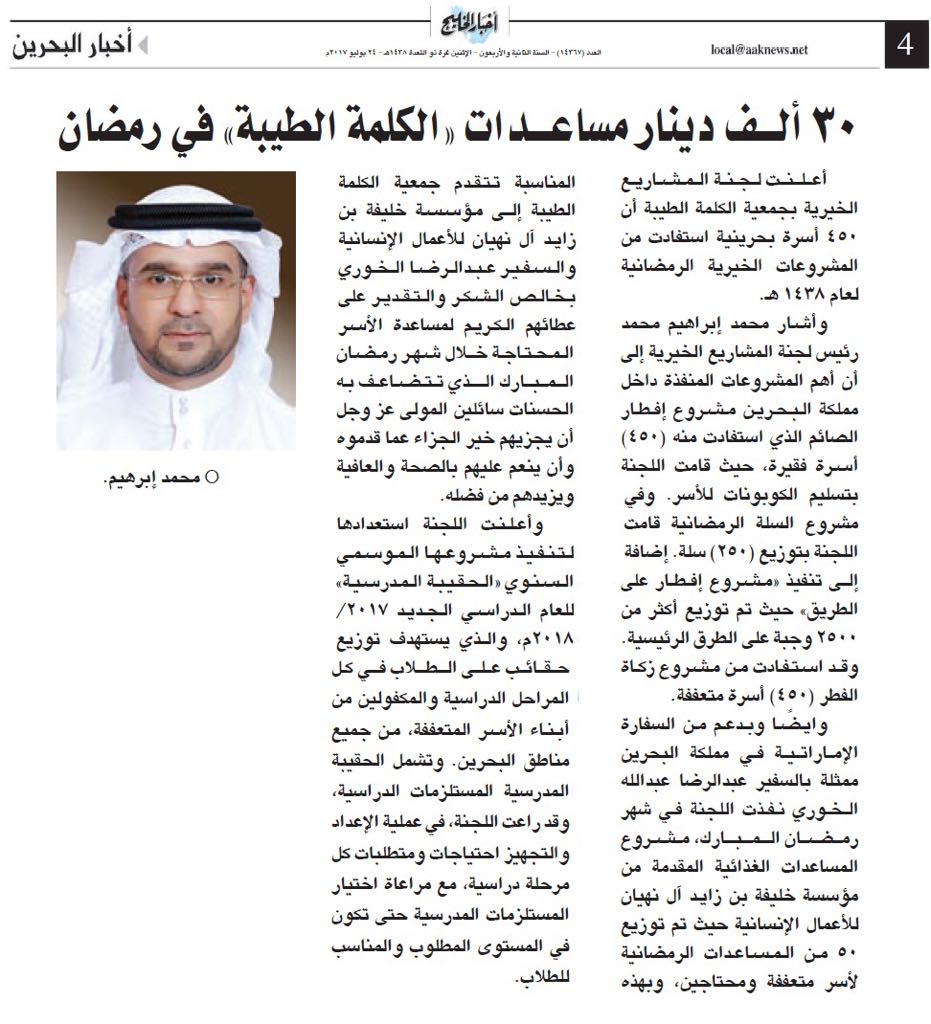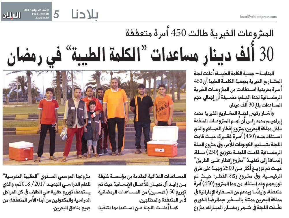 الإثنين ٢٤ يوليو ٢٠١٧ - المنامة - جمعية الكلمة الطيبة:
