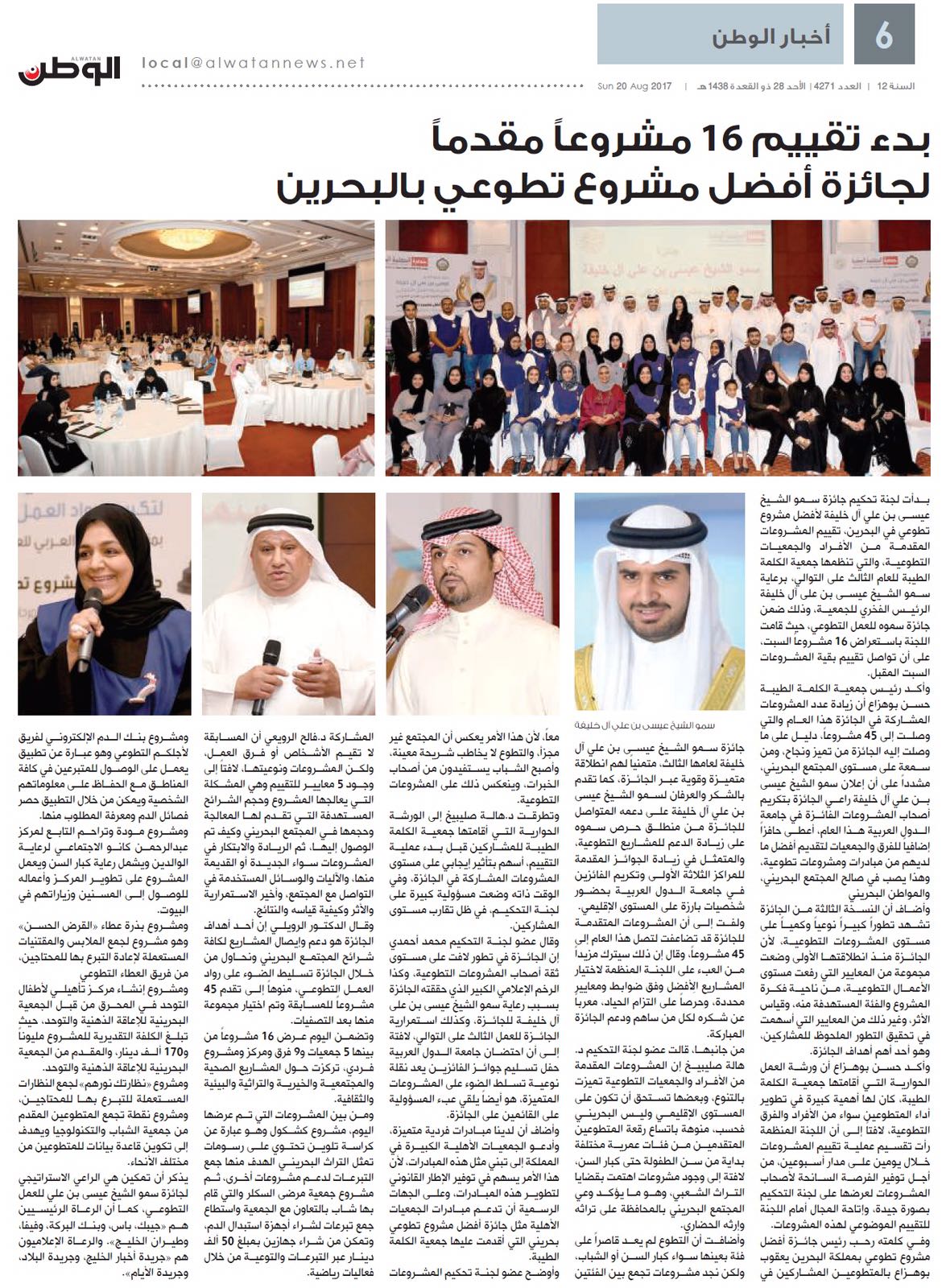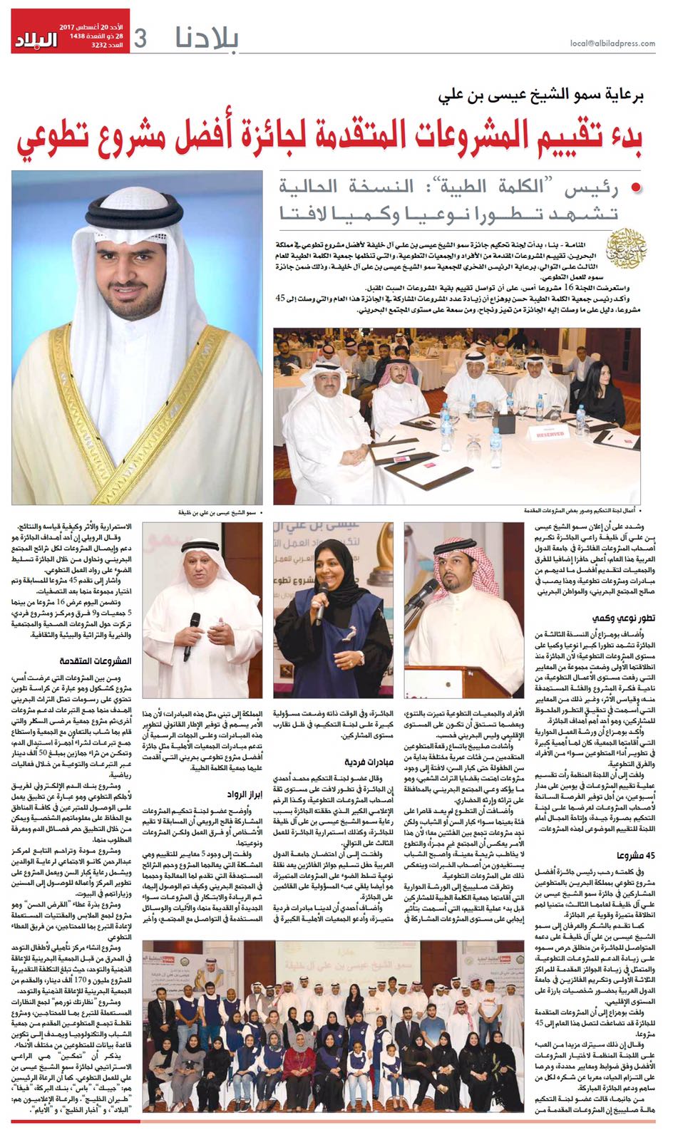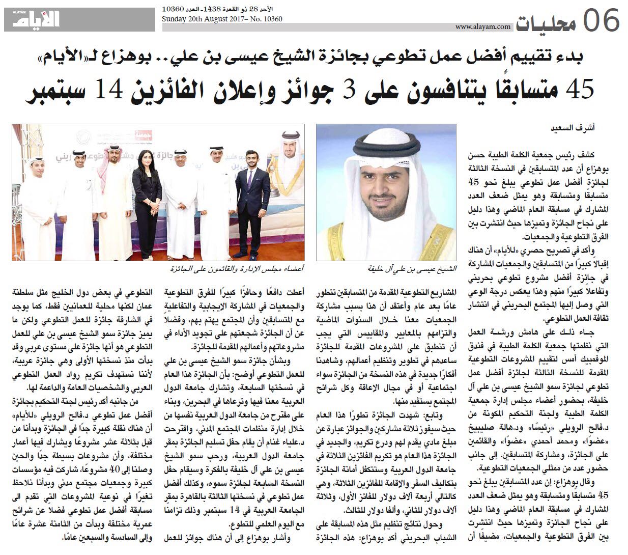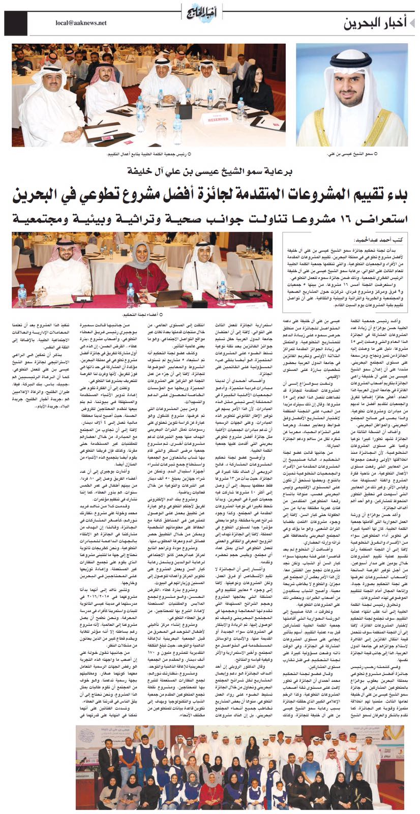بدء تقييم المشروعات المشاركة في جائزة سمو الشيخ عيسى بن علي آل خليفة لأفضل مشروع تطوع - تغطية الصحف المحلية